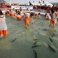 산천어 얼음낚시를 위한 1만 2천 개의 얼음구멍이 있는 화천천은 수심 2m정도의 맑은 강이기 때문에 얼음 밑을 들여다보면 강바닥에서 유영하는 산천어를 쉽게 확일할 수 있다. 축제 기간 중에는 매일 1~2톤 가량의 싱싱한 산천어를 화천천에 넣기 때문에 약간의 운과 실력만 있다면 누구나 다 한 두마리씩은 건질 수 있다. 낚시를 잘하는 사람이나 낚시에 경험이 없는 어린이나 아가씨들이 산천어 얼음낚시에 매혹되어 열광하는 것은 낚시의 결과물이 나타나기 때문일 것이다.