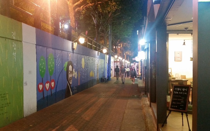 김광석다시그리기길은 대구 중구 대봉동의 김광석이 살았던 방천시장 인근 골목에 김광석의 삶과 음악을 테마로 조성한 벽화거리이다. 2010년 방천시장 문정성시 사업의 하나로 방천시장 골목길에 11월 부터 조성하기 시작한 김광석 길은 중구청과 11팀의 작가들이 참여하였다. 350m 길이의 벽면을 따라 김광석 조형물과 포장마차에서 국수 말아주는 김광석, 바다를 바라보고 있는 김광석 등 골목의 벽마다 김광석의 모습과 그의 노래 가사들이 다양한 모습으로 벽화로 재생되고 있다. 매년 가을에는 방천시장과 동성로 일대에서 김광석 노래 부르기 경연대회를 개최하여 고 김광석을 추억하고 있다.