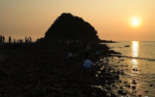 바닷가에 있는 할배바위와 할매바위에는 신라 흥덕왕 때인 838년 해상왕 장보고는 안면도에도 기지를 두었는데 기지사령관이었던 승언과 아내 미도는 부부 금슬이 유난히 좋았다고 한다. 출정을 나간 승언이 돌아오지 않자 남편을 기다리던 미도는 죽어서 할매바위가 되었고 옆에 있는 바위는 자연스레 할배바위로 불리게 되었다고 하는 슬픈 전설이 깃들어 있다. 설물 때면 두 바위가 마치 한 몸인 듯 모래톱으로 연결되는 모습을 볼 수 있다.