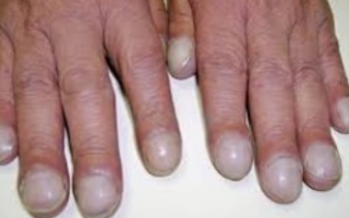 손가락에 튀어나온 혹 같은 것은 뼈 종양이다. 골반 쪽에 퇴행성관절염이 있을 수 있다. 손 가락에 뼈 종양이 있으면 살짝만 건드려도 아프다. 이는 골반, 무릎과 같이 몸의 어디에서나 퇴행성관절염이 있다는 실호일 수 있다. 청색증을 동반하는 선천성 심장 질환에서도 나타나며 손끝이 새파랗고 입술도 파랗게 된다. 간경변증에서도 발생되며 위장 질환 중에서도 크론병이나 궤양성 대장염 등에서도 발생이 된다. 손을 자세히 관찰하면 많은 것들을 찾아볼 수 있다.