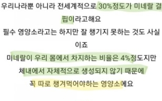 미네랄, 비타민 A, B, C, D, 칼슘을 섭취하도록 한다.