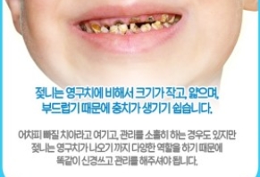 병원에 가야할 때는 영구치가 빠지거나 쪼개졌을때, 유치가 빠졌을 때 영구치가 나올 때까지 빈자리를 메워 줄 필요가 있는지 결정하기 위해 2주이내에 병원에 한번 방문한다. 유치는 젖먹이 때 나서 아직 영구치가 나지 않은 이를 말한다. 젖니 또는 탈락치라고도 하며 뒤에 나는 치아를 영구치 또는 간니라 한다. 사람은 출생 후 6~8개월부터 청백색의 유치가 나기 시작하는데 총 20개가 된다. 2~3세경에는 다 나오고 7세경부터는 먼저 난 치아부터 탈락하기 시작하여 영구치가 나오기 시작한다.