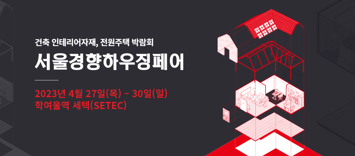서울경향하우징페어는 건축 인테리어자재, 전원주택 박람회로 학여울역 세텍에서 펼쳐지며, 전시 구성 품목에는 구조/내외장재, 창호/하드웨어, 홈인테리어/조명, 조경/공공시설재, 건축 공구/기기, 도장/방수재, 욕실/주방, 주택설계/소프트웨어.