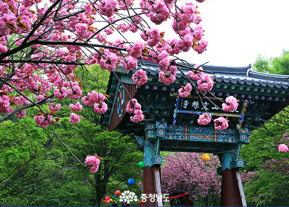 서산 벚꽃명소인 문수사는 충남 서산시 운산면 문수골길 201에 자리하고 있다. 서산 벚꽃명소인 문수사로 올라가는 길에도 겹벚꽃이 만발하여 아름다움을 자랑하고 있다. 겹벚꽃의 터널을 지나게 된다. 화려한 벚꽃을 머리에 이고 문수사 까지 가는 길은 발걸음이 가볍다. 문수사는 고려시대에 세워졌다고 하나 조선시대에 극락전만 남고 화마에 불타 현존 건물은 조선시대 건물이다