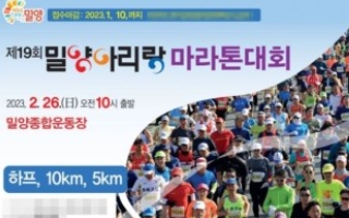 밀양아리랑마라톤대회는 2023년 2월 26일 10시부터 밀양종합운동장에서 펼쳐진다. 공기 좋고 물 좋은 밀양의 싱그러운 자연을 마음껏 만끽할 수 있는 기회가 왔다. 나노융합국가산업단지를 중심으로 새로운 100년 르네상스 시대를 열어가는 미량의 미래지향적인 모습을 담아가자. 밀양에서 희망찬 새해 희망을 만들어 보자.