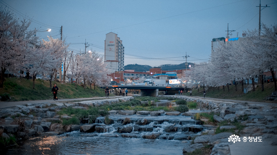 천안 벚꽃명소 원성천 벚꽃, 천안 벚꽃 명소로 원성천, 불당천, 단국대 천호지 ,북링고, 북면 등이 있는데 원성천 벚꽃이 가장 먼저 만개한다고 한다. 원성천의 물길을 따라 좌우에 산책로가 자리하고 있어 많은 사람들이 산책을 즐기고 있다, 산책로 옆으로 벚나무가 자라고 있어 활짝핀 벚꽃과 함께 원성천변을 산책을 즐길 수 있는 길이다.