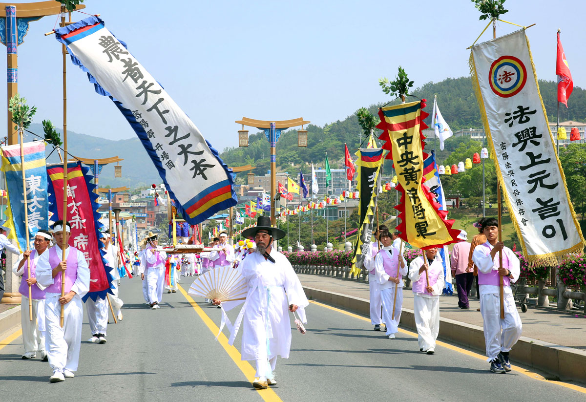 밀양아리랑대축제는 1957년 밀양문화제로 시작해 경상남도를 대표하는 향토 축제로 자리매김했으며, 밀양아리랑 경연대회와 아리랑체험, 각종전통문화체험이 진행된다. 임진왜란에서 나라를 구하신 사명당임유정의 성사의 충의정신, 조선시대 성리학의 태두이신 점필재 김종직 선생의 지덕정신, 죽음으로서 순결의 화신이된 윤동옥 아랑낭자의 정순정신이 있다.