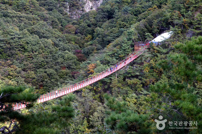 감악산 출렁다리는 파주시 적성면 설마천로 238에 자리하고 있으며, 경기 오악 중 하나로 바위 사이로 검은빛과 푸른빛이 동시에 나왔다 하여 감색 바위산이란 뜻이다. 출렁다리는 전국 최장 150m의 무주탑 산악 현수교로 자연과 조화를 이루도록 시공되었다. 설마천을 끼고 있는 아기자기한 계곡, 운계폭포가 감악산의 자랑으로 거의 수직으로 떨어지는 폭포이다.