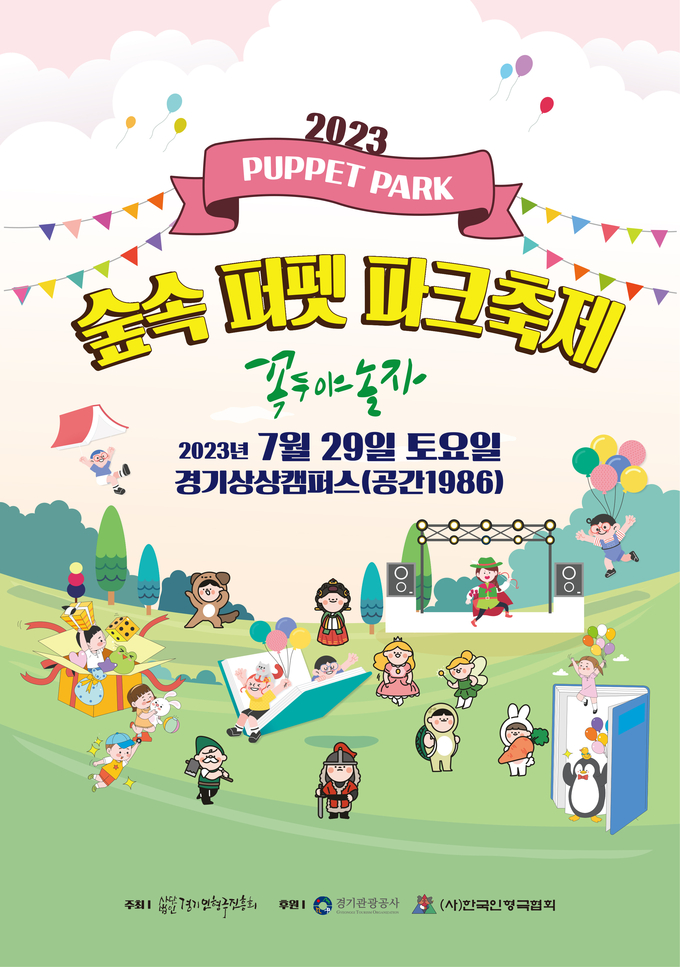 숲속 퍼펫 파크축제는 2023년 7월 29일 11시 30분부터 16시 30분까지 경기상상캠퍼스 공간 1986에서 진행된다. 2023 숲속 퍼펫 파크축제를 통해 문화예술공연 축제를 지역 명소화 하고자 한다. 경기인형극진흥회는 경기도의 문화예술적 자산과 경기도민들의 감수성을 넓히기 위해 노력하고 있다.