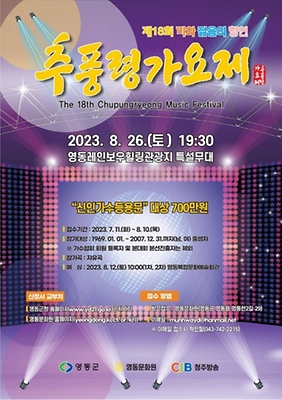 추풍령가요제는 2023년 8월 26일부터 2023년 8월 26일까지 충청북도 영동군 영동읍 영동황간로 123의 영동레인보우 힐링관광지 특설무대에서 펼쳐진다. 제16회 추풍령가요제는 신인 가수들의 등용문으로 충북 영동군에서 열린다. 전국 1965년 1월 1일부터 2003년 12월 31일 출생자까지 남녀 누구나 참가할 수 있으며 미리 참가 신청서를 접수해야 한다.