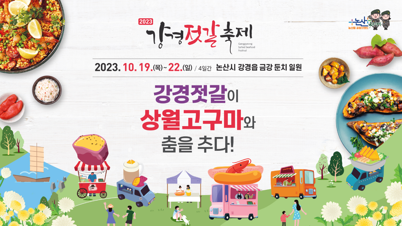 우리나라 대표적인 산업형 축제로 발전한 강경젓갈축제는 당초 IMF가 한창이던 1997년 경제 극복의 일환으로 지역경제 활성화 및 상인들의 소득증대 취지에서 강경 젓갈상인들의 뜻을 모아 시작한 축제가 해를 거듭할 수록 규모가 커져 오늘에 이르고 있다. 대한민국 젓갈 명소 강경에서 신선하고 다양한 젓갈과 함께 좋은 땅의 기운으로 완성된 상월명품고구마로 넉넉한 덤과 따뜻한 고향의 정을 듬뿍 느껴보자.