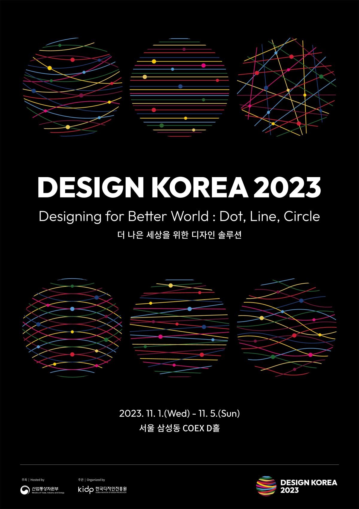 디자인코리아는 "더 나은 세상을 위한 디자인 솔루션"를 주제로 2023년 11월 1일부터 2023년 11월 5일까지 10 ~ 18, 일요일은 15시까지 서울 삼성동 코엑스 D홀에서 펼쳐진다. 요금은 사전예매는 네이버, 티켓링크에서 할 수 있으며 5,000원이며, 현장예매는 8,000원이다. 단체예매는 10인이상으로 3,000원이다. 산업통상자원부 주최 한국디자인진흥원 주관이다.