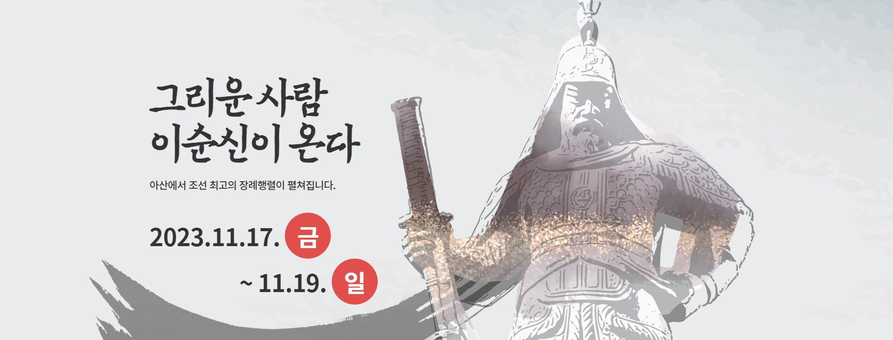 이순신 장군이 영면한 아산시에서만 가능한 유일무이한 장례행렬 재연으로 이순신 장군이 영면한 도시 아산에서 이순신 장례행렬을 재연한다. 고 박동진 명창의 이순신가를 복원한 이봉근 명창의 성웅 충무공 이순신가 공연과 국가무형문화재 종묘제례악 보존회의 충무공 현충 제례악이 공연되어 어디서도 못볼 귀한 공연들까지 만날 수 있는 중요한 기회가 된다.