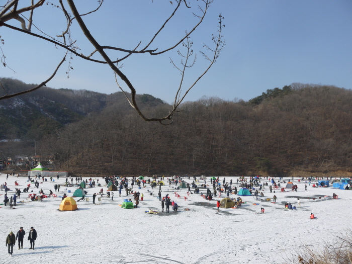 1989년 부터는 이러한 장점을 활용하여 빙어자원을 꾸준히 조성하였고, 1992년에 빙어낚시를 시작하여 현재는 수려한 경관과 함께 수도권 빙어낚시의 명소로 자리매김해 오고 있다. 빙어낚시와 함께 얼음 미끄럼틀, 포토존, 얼음 바이크, 어린이 ATV, 아이스 범버카, 연날리기 ,제기차기,팽이치기등의 겨울 놀이를 통해 잊혀진 동시의 세계를 찾아가자.