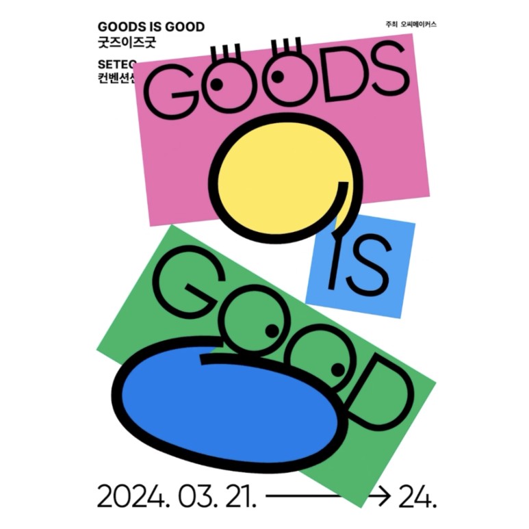굿즈이즈 굿 V.1 은 2024년 3월 21일부터 2024년 3월 24일까지 세텍에서 펼쳐진다. 세부 장소는 SETEC 제1전시장, 제2전시장, 제3전시장에서 진행된다. 전시분야는 문화콘텐츠 ,만화, 애니메이션, 캐릭터 등이 있으며 전시품목으로 영상, 일러스트레이션, 회화, 그림책 ,독립출판, 캐릭터디자인, 그래픽디자인, 게임, 애니메이션, 웹툰, 캐리그라피 등이 있다.