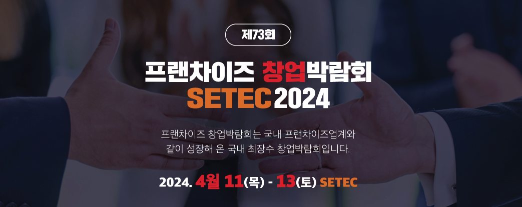 프랜차이즈 창업박람회 SETEC은 2024년 4월 11일부터 2024년 4월 13일까지 SETEC에서 펼쳐진다. 요금은 사전등록시 무료로 입장할 수 있으며 현장 구매시에는 10,000원의 입장료를 구매하여야 입장할 수 있다. 참관대상은 명예퇴직예정자, 퇴직자 ,청년창업자, 신규사업발굴기업인, 프랜차이즈본사, 일반주부 대상 3만여병 참관 예상이 된다.
