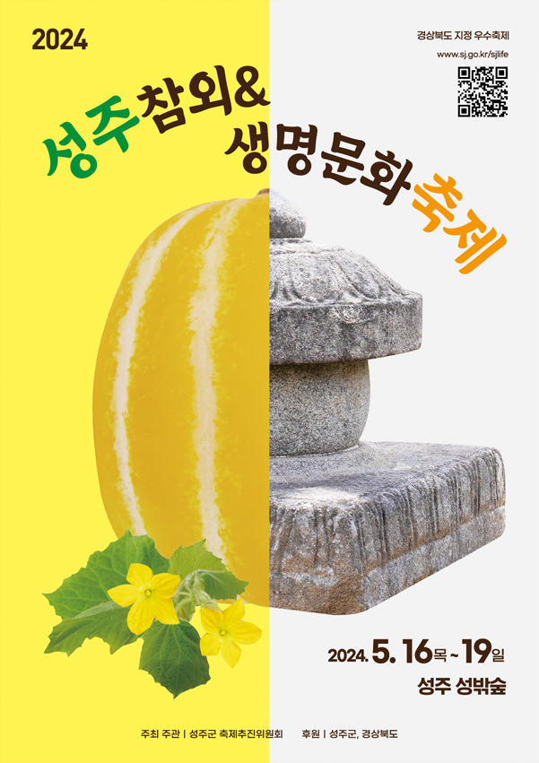 성주참외 생명문화축제는 2024년 5월 16일부터 2024년 5월 19일까지 성주 성밖숲에서 펼쳐진다. 참외향 가득한 5월 참외와 생, 활, 사 생명문화의 고장 성주에서 봄 먹거리 축제인성주참외 생명문화축제가 개최된다. 세종대왕자태봉안재현행렬, 성주군민 길놀이 행사를 시작으로 개막식, 주제공연, 참외가요제 ,태교음악회, 드림 페스티벌, 별뫼줄다리기 등 다채로운 행사가 진행된다.