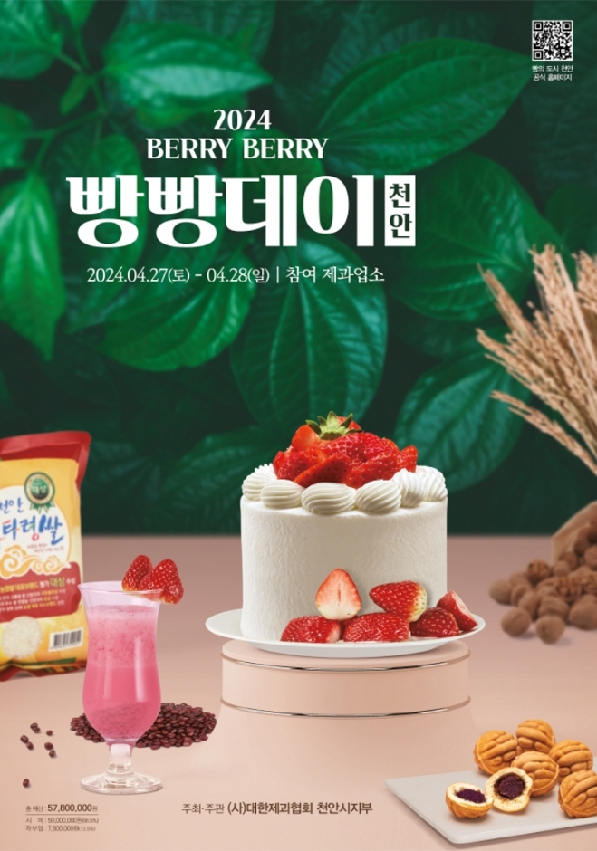 2024 베리베리 빵빵데이 천안은 봄의 대표 과일인 딸기와 함께하는 참여형 베이커리 행사이다. 천안 내 행사 참여 동네 빵집을 빵지순례하며 천안딸기 및 농축산물을 활용한 다양한 베이커리 제품을 구매하고 가족, 친구와 특별한 추억을 만들수 있는 좋은 기회다. 톡톡 튀는 레시피와 건강하고 트랜디한 메뉴가 가득한 천안의 빵집으로 빵지순례를 떠나보자.