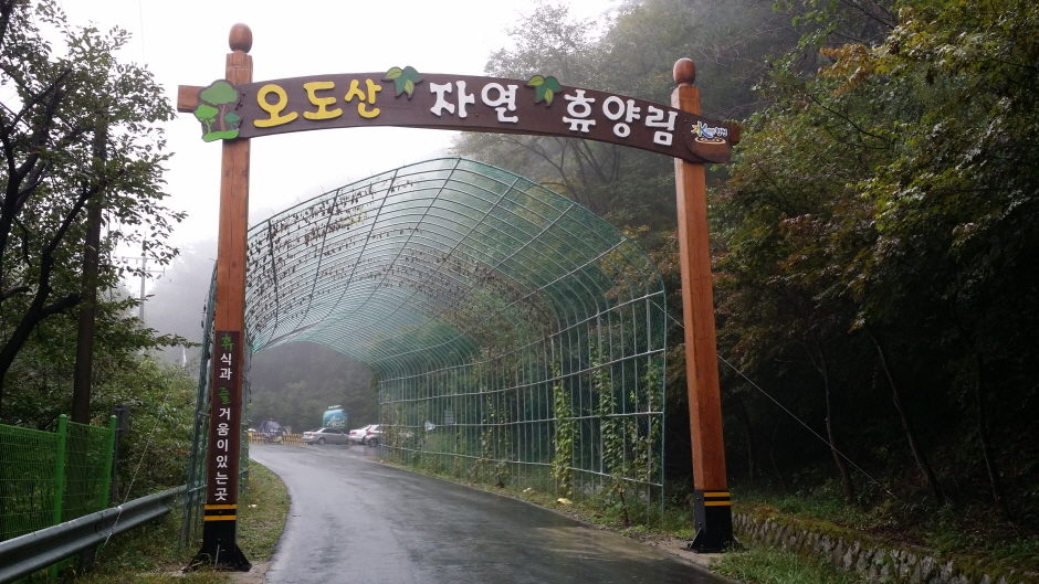 오도산자연휴양림은 경남 합천군 봉산면 오도산휴양로 398에 자리하고 있으며 해발 1,133m의 고산준ㄹ여인 합천 오도산의 한 자락에 위치하고 있다. 오도산은 경상남도 거창군 가조면과 합천군 묘산면 ,봉산면 등에 걸쳐 있는 산이다. 북동쪽으로 2㎞ 지점의 두무산 등과 더불어 가야산맥의 말단봉을 이룬다. 오도산 자연휴양림은 북쪽으로 우리나라 3대사찰 중의 하나이며 법보종찰인 해인사와 가야산, 매화산이 위치하고 있으며 나으로는 합천호와 연결되어 주변에 관광명소가 많다.