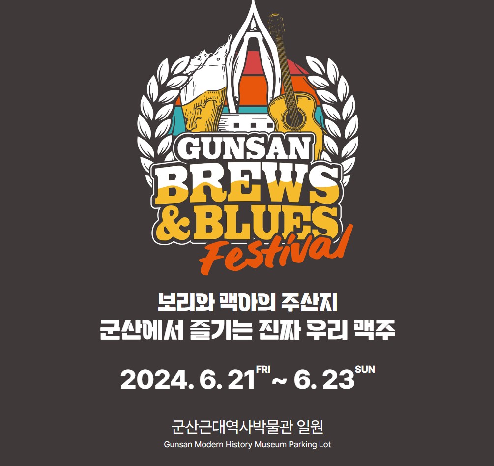 군산 맥주축제인 군산 수제맥주 & 블루스 페스티벌은 2024년 6월 21일부터 6월 23일까지 3일간 군산근대역사박물관 주차장에서 12시부터 22시까지 펼쳐진다. 군산항구에서 군산맥아로 만든 진짜 우리 수제맥주와 국내외 16개 블루스밴드의 화려한 라이브 연주와 함께 즐길 수 있다. 군산 수제맥주&블루스 페스티벌은 국내 유일의 로컬 수제맥주 축제로 맛집 천국 군산의 20여개 군산맛집이 참여한다 .국산 맥아로 만든 진짜 우리맥주와 블루스음악이 마련되어 있다.