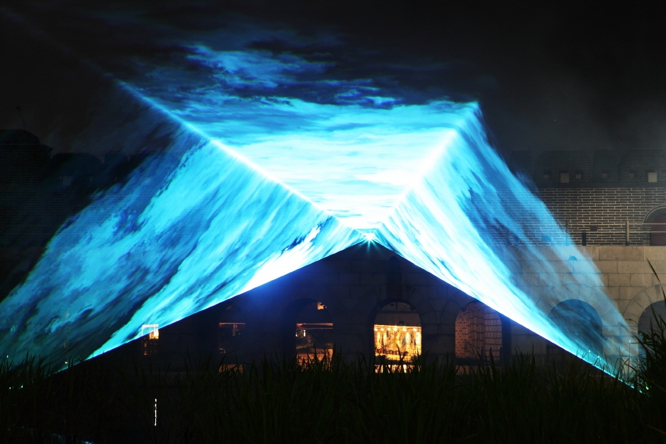 미디어아트 코스모스는 우주를 주제로 한 국내 초청작가 2인의 미디어아트 작품을 장안문 옹성 내부에 전시한다. 김영태 작 만개의 시간 사시지외는 만개이 시간이라는 제목의 내용으로 장안문이라는 한정된 공간 내에서 관람자들에게 무하의 공간과 시간을 시각적으로 느끼고 경험할 수 있도록 기획한 작품이다. 서로의 관계 속에서 피어나는 군비의 움직임과 모습은 수많은 만개의 시간 속에서 만개의 모습으로 나타나게 된다.