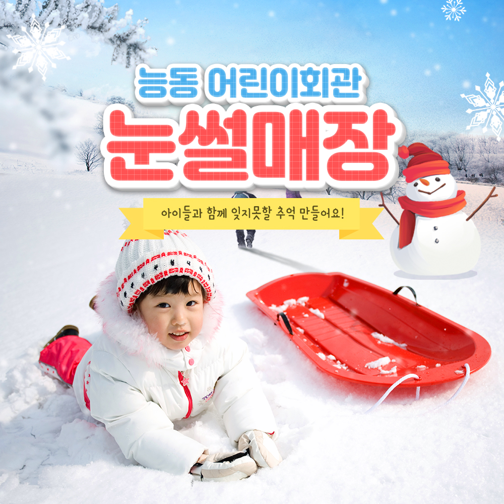 능동 어린이회관 눈썰매장에서 이번 겨울 아이들과 잊지 못할 추억을 만들어보자. 능동 어린이회관 눈썰매장은 서울 광진구 능동에 위치하고 있어 도심 밖으로 멀리 나가지 않아도 즐길 수 있는 멋진 겨울 여행을 위하여 색다른 서비스와 차별화된 추억을 만들 수 있을 것이다. 어린이회관 눈썰매장에서는 안전하고 즐거운 시설 속에서 아이들에게는 뛰어난 학습효과를 어른들에게는 도심 속 낭만을 느낄 수 있을 것이다. 삭막한 도심 속에서 가족과 함께 할 수 있는 자연형 테마파크에서 꽁꽁 얼어붙은 마음을 녹이고 즐거움으로 마음을 담아가보자.